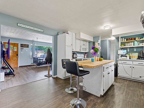 Rare 4 bed, 2 full bath ranch on the north side of town with almost 1,700 square feet for under $190,000! This home features a limestone fireplace, spacious open kitchen w/butcher block island. Fully remodeled spacious garage with large foldable workbench. All appliances stay including washer and dryer. Wonderful 0.3 acre lot with a huge easement which can be utilized as well, doubling the size of yard. 3 indoor cameras, 2 outdoor floodlight cameras, 2 ring doorbells, 3 door sensors, glass break sensor, carbon monoxide and fire sensor, 1 motion sensor, base station, and 2 wireless keypads all stay with home. Close, easy access to Riverbend GolfCourse (2 blocks away!) and I-469.