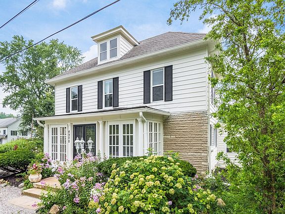 Beautiful, historical farmhouse with updates throughout. Four large bedrooms, three and a half baths, remodeled kitchen with a huge island. Hardwood floors throughout. This is your chance to own a two and a half acre lot in New Albany! Enjoy the outdoors with plenty of space and meticulously maintained gardens. A unique opportunity to be close to everything, while still having a rural feel.