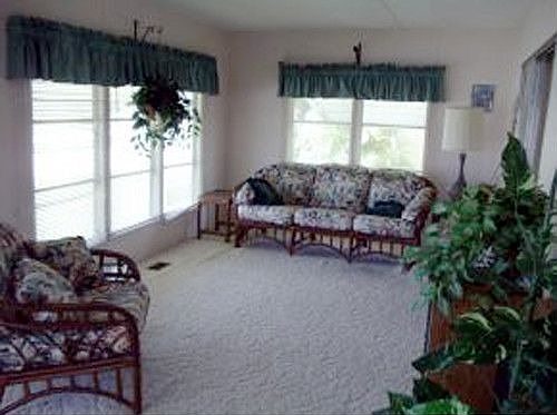 SAY HELLO TO A GOOD BUY! BRING YOUR TOOTHBRUSH! Nothing to do here but move in and start enjoying life at its finest!!! 55+ community loaded with amenities including shuffleboard, pool, and clubhouse activities. Walk to shopping centers and restaurants, plus the City golf course is nearby. 2 bedrooms, 2 baths plus screened porch. Fully furnished plus Appliances stay including washer and dryer. Sprinkler System. Roof, awnings, porch, paint and carpet all replaced in 2005. Unbeatable deal!