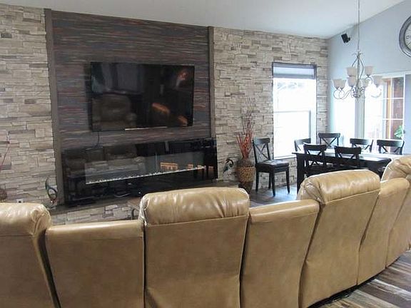 You must see this home with excellent curb appeal and stone and copper accents. The large foyer welcomes guests to this unique home with custom paint and Tuscan stucco walls. The main floor features a gourmet kitchen with distressed cream cabinets, upgraded appliances, including double wall oven and cooktop, and HUGE center island. The countertops are granite. The living area is open to the kitchen and dining and has a fireplace with unique wood plank accents. Off the kitchen is a 4 seasons room. The master bedroom suite has a huge bath with double granite sinks, heated marble look tile, custom tile shower and large walk in closet. There is an additional bedroom that could be used as an office. Upstairs are 2 additional bedrooms with wood plank accents/ceiling and a full bath plus a large storage room. The 1221 sq ft 4 stall garage is a car enthusiasts dream with epoxy floors and great space for vehicles or entertaining, plus there is a camper pad. This is a magnificent home.