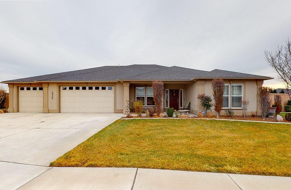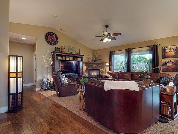 Beautifully maintained Hammerstrom built 4 BR 2 BA rambler with FIVE car garage in West Pasco's First Place development! Cheery hardwood entry hall reflects the friendly spirit of this stunning rambler with vaulted ceilings, granite counters, great room, and split-bedroom design! Spacious great room with stone surround corner gas fireplace opens to spacious island kitchen where meal prep is a breeze with the ample counter space, corner pantry, stainless steel appliances, gas range, and prep island with eating bar. Relax in the master suite with private bath featuring dual sink vanity, walk-in tiled shower, and walk-in closet. Roomy secondary bedrooms and den/office off entry that is just right for work that needs quiet concentration (or makes a great fourth bedroom option). Large corner lot with fully-fenced backyard and oversize covered patio perfect for dinner parties. Huge five car tandem garage with plenty of storage, great workshop area, and own heating/cooling for year-round comfort! This beautiful home is located near five-acre community park, running/bike trails, golf, shopping, restaurants, and highway access--schedule your private showing today!