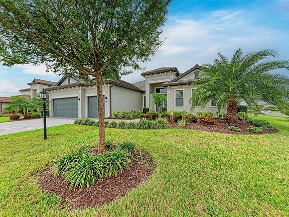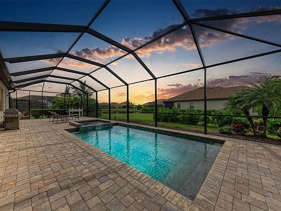 Modern elegance meets resort-style living in this Executive Sunset model, this home is perfectly situated in the coveted Lorraine Lakes community of Lakewood Ranch. Meticulously maintained and thoughtfully designed, this single-story residence offers 3 bedrooms, 3 full bathrooms, a 3-car garage, private office, and a sparkling heated pool with spa. From the moment you enter, soaring 12-foot ceilings, an architectural feature wall, and walls of natural light set the stage for sophistication and comfort. The open-concept floor plan flows seamlessly, anchored by a chef’s kitchen that exceeds expectations with an expansive island, quartz countertops, stainless-steel appliances, gas cooktop, and designer tile backsplash. Whether preparing a quiet dinner or hosting family and friends, this space is both functional and stunning. The primary suite is a true retreat, complete with dual walk-in closets, a ceiling fan, and sliding glass doors that open directly to the poolside lanai. A split layout ensures privacy, with two additional bedrooms and baths—one serving as a secondary suite with its own walk-in closet and en-suite bath, perfect for guests or multi-generational living. Working from home is effortless in the private office with French doors, while the fully insulated and air-conditioned garage adds comfort and convenience. Additional upgrades include a whole-home water filtration system, Nest thermostat, Wi-Fi signal extenders, window treatments, and upgraded ceiling fans. Step outside through oversized sliding glass doors and discover your personal paradise. The heated pool and spillover spa are framed by a screened-in lanai, designed for both relaxation and entertaining. Evenings come alive with custom LED lighting that creates the perfect ambiance. Life at Lorraine Lakes is nothing short of extraordinary. The 25,000 sq. ft. Town Center Clubhouse offers a full-service restaurant, tiki bar, coffee lounge, resort-style pool, lap pool, splash pad, fitness center, and courts for tennis, pickleball, basketball, bocce, and volleyball. Here, every day feels like a vacation. Beyond the gates, Lakewood Ranch—the nation’s #1 multi-generational master-planned community—offers premier dining, shopping, miles of scenic trails, lakes, and nature preserves. Top-rated schools and the world-renowned Gulf Coast beaches are just minutes away. This isn’t just a home—it’s a lifestyle of luxury, leisure, and connection. Schedule your private showing today and experience the unparalleled lifestyle that awaits.