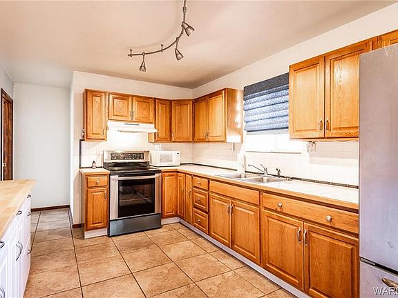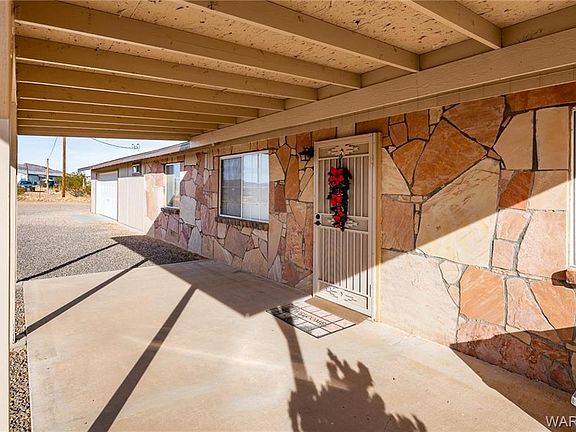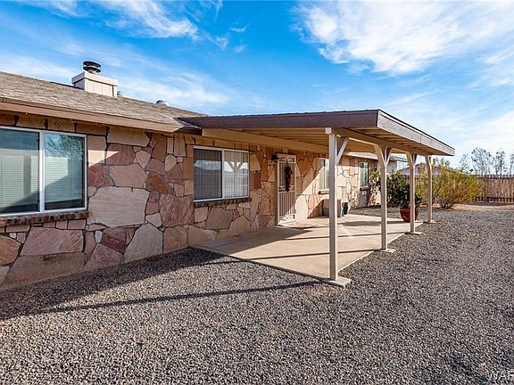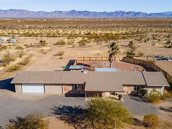 Nice clean and move in ready home located in Beautiful Golden Valley just minutes from the Colorado river and Laughlin Nevada. This home features include Newer roof , Newer HVAC, added insulation in attic and the guest bath was remodeled to include new tile walk in shower in 2013. The living room features flag stone around the Pellet stove which was added in 2017. The kitchen features lots of cabinets, newer oven purchased in 2018 and newer refrigerator in 2014. Wood laminate flooring in living room and casual dining. This is a 3 bedroom home with two additional bonus rooms just add a closet to have 5 bedrooms! In 2016 a 16X18 aluminum awning was installed on back patio just perfect to enjoy the mountain views. Some of the doors in the home are extra wide to accommodate a wheel chair, all appliances are included, newer hot water heater installed in 2017, front covered patio and 50 amp RV plug and dump by shed. Owners faithfully had heat and AC checked twice a year. Call today to view this home!