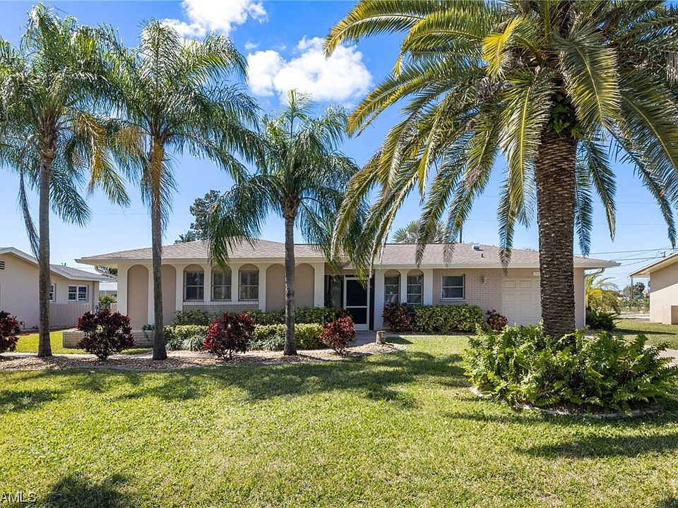 This charming residence, boasting an inviting curb appeal, is nestled in the prestigious Yacht Club area, creating an idyllic setting for a delightful first-time home or a lucrative investment opportunity. The property features a spacious, fenced backyard, perfect for outdoor activities and leisure, offering a private oasis of tranquility with tons of room to add a custom pool. Situated just moments away from a plethora of dining options and shopping conveniences, this home ensures a lifestyle of comfort and convenience. Inside, the open floor plan seamlessly connects living spaces, with sliding doors leading to a serene lanai and the expansive backyard, creating an ideal environment for entertaining and relaxation. The home has been thoughtfully updated, with the bathrooms undergoing complete renovations to offer modern comforts and style. Additional enhancements include a 2017 roof replacement and an upgraded A/C system in 2019, ensuring a worry-free living experience. The bedrooms are adorned with plantation shutters, adding a touch of elegance and privacy. This property presents a fantastic opportunity to own a piece of paradise, combining updated interiors, a generous lot, and the allure of the surrounding area. Whether you're looking for a cozy first home or a wise investment, this home is a perfect blend of charm, functionality, and potential.