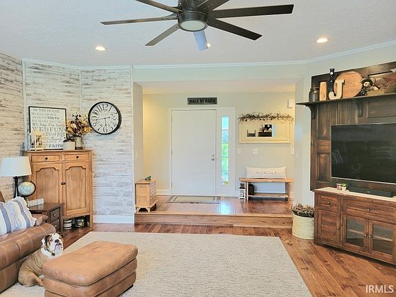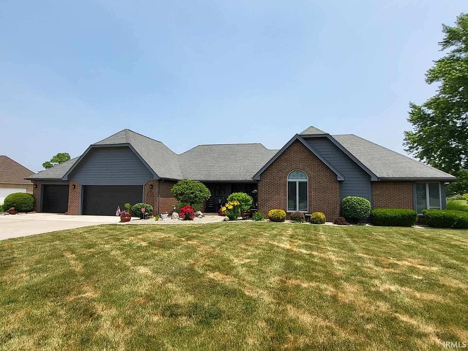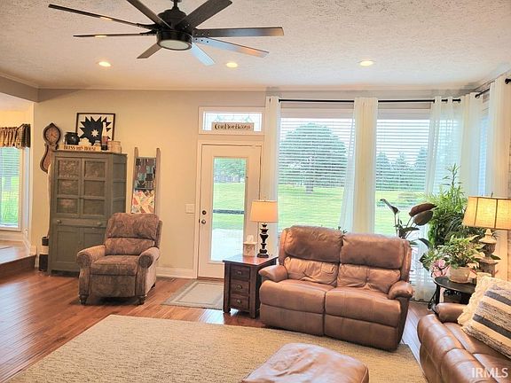 Spectacular remodeled 3 bedroom 2 and a half bath home on the 13th green of Chippendale Golf Course features the beautiful views from both the front and the rear of home! Enjoy coffee and the sunrise in the morning on an extra large patio under the gazebo while watching the golfers pass by. Do you love a great sunset? A west facing view with nothing but Indiana farm fields offers a wonderful breeze and the tranquility of country living. Love to entertain? Large living room with hickory flooring exits onto large back patio, which is complete with a firepit, and it situated just off of the eat in kitchen. Kitchen is mostly open to living room and has been recently updated. This unique kitchen offers an amazing and creative design, an abundance of natural light, a double oven, gas cooktop, stone countertops, hardwood flooring, and a large walk in pantry. The main bedroom ensuite calls for you to relax with spacious carpeted bedroom. Private bath is complete with vaulted ceiling, skylight, soaking tub, shower, and dual sinks. Additional features include 3 car garage with pull down attic stairs, floored partial attic for storage.