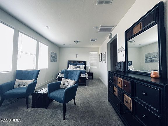 Why Buy New? Rare two master suites. Meticulously maintained & move in ready! In the highly desired master planned community of Eastmark! This beauty features two master suites with extra large walk in closets & modern style interior. The Kitchen is open & bright with upgraded white maple cabinets & stainless steel appliances. Chipped ice quartz counter tops with 3x6 backsplash. 8' tall interior doors - 12' wide glass doors leading out to covered patio & large lot.