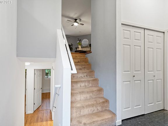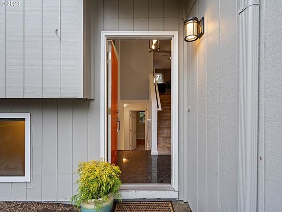 Your Sweet Seventies Split awaits. Head upstairs to open living/dining, oak hardwoods, wood burning fireplace. Slider to back deck & to private backyard filled with evergreens. Kitchen has a nook for coffee or work space. Downstairs the large primary bedroom has its own vanity & direct access to the full bath. New vinyl flooring in the entire lower level. Easy access to I5, Barbur World Foods, Lake O and a stone's throw from PCC. A unique, lovable home is ready for you. [Home Energy Score = 5. HES Report at https://rpt.greenbuildingregistry.com/hes/OR10190470]