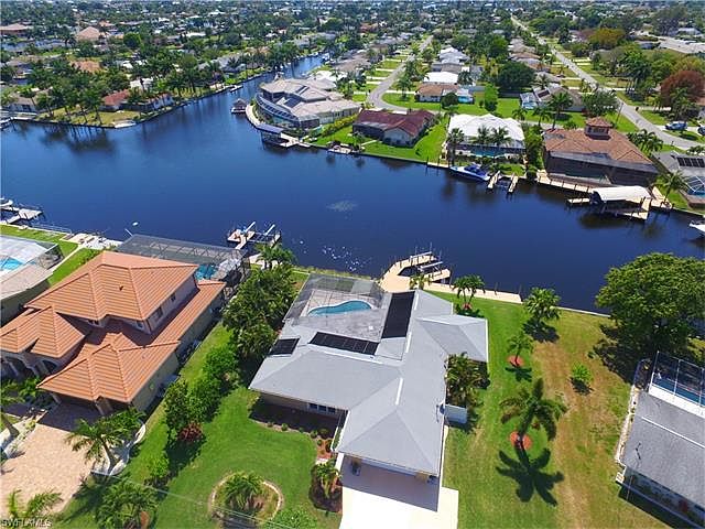 ON THE "GRAND CANAL" OF CAPE CORAL - This is why you came to Florida. Beyond meticulous - discerning buyers will appreciate the attention to detail found in this lovely home on the San Carlos Canal, one of the widest sailboat access canals in the Cape. No bridges, no locks, just a short boat ride to open water, the ICW, and Gulf of Mexico. This spacious home offers gracious living, privacy, and fabulous sunset view of wide water and intersecting canals on a large 3-lot site. Double car garage + extra parking pad. Very large pool with new energy-efficient heat pump overlooks boat dock with 7,000 pound boat lift. Lovely home for entertaining with exceptional energy efficiency, (amazingly low electric bills), storm protection and happy Florida life-style living. Lots of palms and fruit trees too. Home includes 10'X8' remote controlled movie screen, projector, & surround sound with 11 speakers plus abundant storage in laundry room. Important Note: Square footage does NOT include the 128 Sq.ft. "music room", built under permit but not shown on tax rolls. Total Sq.Ft. per seller is 2,410. (Please see attached list for additional features.)