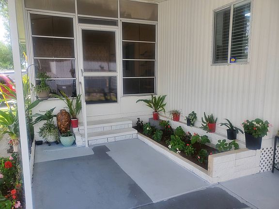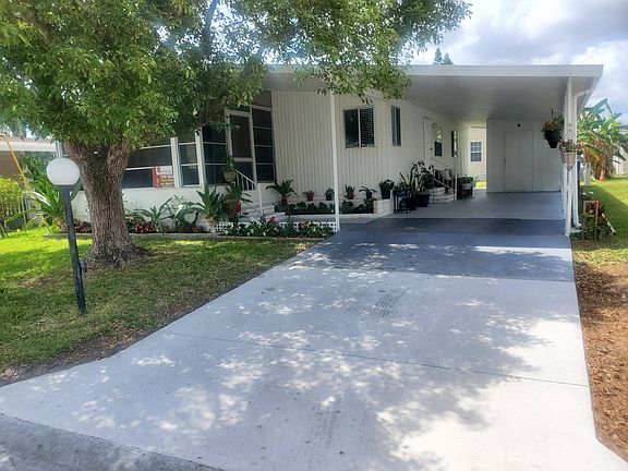 Introducing you to this amazing and well maintained 2 bedroom 2 bath home amidst an array of beautiful flowers. This home is a must see with new appliances throughout. It features a 2020 refrigerator, a 2021 range and a 2021 dishwasher. There is also a storage shed attached with a washer and dryer. The floors are wood laminate and installed in 2021 and the air conditioner and water heater were installed in 2022. There is a large carport, a lovely enclosed Florida room and the house comes unfurnished with negotiable items. The lot rent is 935.00 and includes water, trash, sewer, lawn care and cable. Located in a wonderful park Windmill Manor, this park offers a clubhouse, community pool, library, game-room, fitness room and billiards, it also has a dog park since it accepts 2 pets. This park is close to I-75 and all airports as well as restaurants, shopping plaza's and medical offices and our beautiful Florida beaches. Call me to view, this might be the home you have been looking for. All listing information is deemed reliable but not guaranteed and should be independently verified through personal inspection by appropriate professionals. Integrity Mobile Home Sales cannot guarantee or warrant the accuracy of this information, measurements, or condition of any property. Measurements are approximate. Lot rent is subject to change.