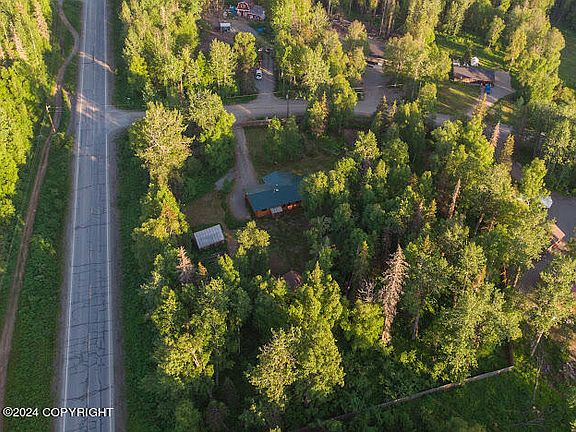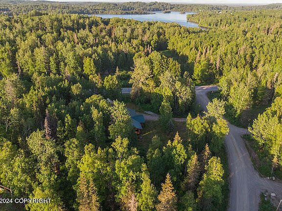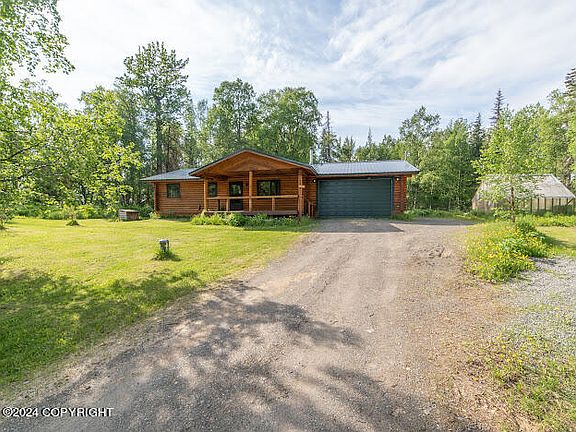 Renovated clean Alaskan dream log home on a private 1.95-acre lot! You will love the open concept design with the vaulted ceiling and wood stove. Home features 2 bedrooms w/an office/bonus room. New flooring, new tub, new counters, newer metal roof, generator set up w/enclosure, 2 storage sheds, a green house, and all the privacy you dreamed of having with a tall cedar fence around the entire lot