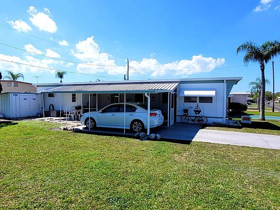 This perfect home is located in Coach House Mobile Home Park (55+) and has had countless updates done. The home features 2 rooms and 1 bathroom as well as a great Florida room. In addition to all this, the home features a great shed, a long driveway, a covered carport and to top it off tons of currently empty space next door giving you a sense of privacy and space. Inside the home has had plenty of work done including new floors, new vanity in the bathroom, remodeled kitchen including a new and large kitchen sink. In addition to the work done inside the roof has been replaced making this home worry and hassle-free! The park is 55+, pet friendly, and features a pool! Lot rent is $508/month which includes water and trash.