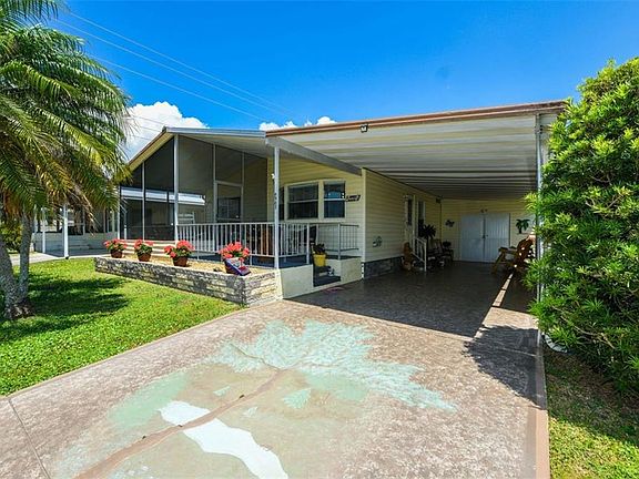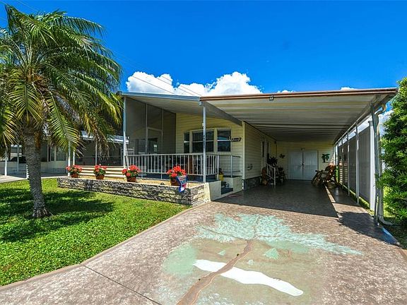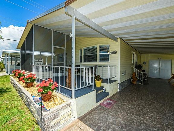 Looking for a meticulously-maintained and move-in ready manufactured home in the area's premier resident-owned (no lot rent) 55+ community? Well...look no further, because this one has it all! The spacious kitchen is highlighted by a newer (installed 12-28-16) GE stainless-steel appliance package that includes a french-door refrigerator, range, dishwasher, and microwave. The expansive master suite features a huge walk-in closet and offers plenty of space for a king-size bedroom set. The large living room boasts a vaulted ceiling and gorgeous wood beams; and leads out to a screened lanai and covered porch. The carport can comfortably fit two vehicles; and the oversized shed can easily accommodate the included washer and dryer, as well as a golf cart, work bench, etc. Recent updates include new flooring and subflooring throughout, new blinds, new electrical outlets and lighting, and a new surge protector. Golf Lakes is centrally located and offers a wide array of amenities; including a heated pool, spa, sauna, fitness center, golf course, pickle ball courts, shuffleboard courts, and much more. HOA dues are very low, and include Spectrum cable and internet, water, sewer, trash, and lawn care. This home is being sold partially furnished. Golf Lakes does not allow pets. Welcome home!