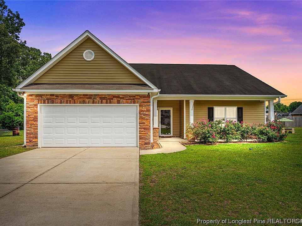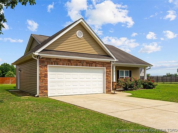 Welcome Home to Grays Creek! Country Living on a Cul de Sac. 9' Smooth Ceilings. Front Porch just waiting on your Rocking Chairs. No Carpet! Open concept Living Room with Fireplace & Dining Room. Exterior Door leads out to the Patio Area for Grillin', Chillin' and Yard Games. Kitchen has Granite Counters, 42" Cabinets, Tile Backsplash, SS Appliances to include Range, Microwave, Dishwasher & French Door Refrigerator. Down the Hallway discover 3 Bedrooms, 2 Full Baths & Laundry Room. The Owners Suite includes Walk in Closet & Double Vanity in the Bath. Large Yard to enjoy the Outdoors. Conveniently located off Hwy 87 with easy commute to Ft Liberty, NC Beaches to the East and I-95 to travel N or S. Come see this beauty today!!