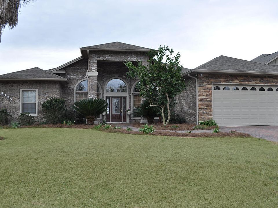 Beautifully designed and move-in ready ALL brick home in the Cherokee Heights Cedar Branch community. This 3BR/2.5BA custom built home is dressed to impress with arched doorways, graceful columns, 10' ceilings, crown molding, designer light fixtures and much more. Just off the grand foyer is a formal dining room to your right and an office to your left. The spacious living room boasts built-in bookcases which flank the fireplace and there is a wonderful view of the backyard and pool area. If you love to cook then it'll be a complete joy in this kitchen with top-of-the-line stainless appliances, granite counters and copious amounts of cabinet space! The home features a split-bedroom floor plan; the master bedroom has a tray ceiling and the en suite includes a walk-in closet,