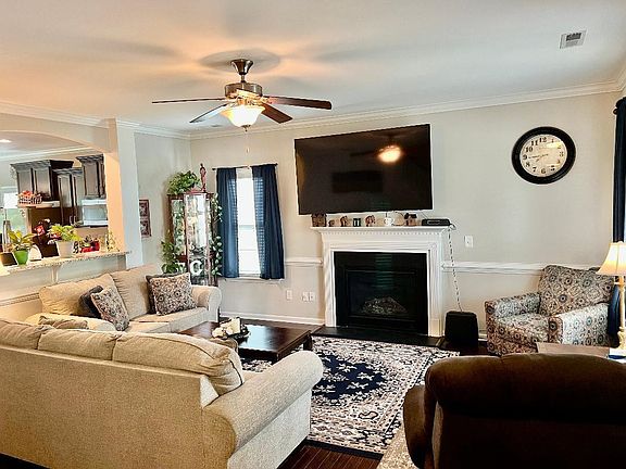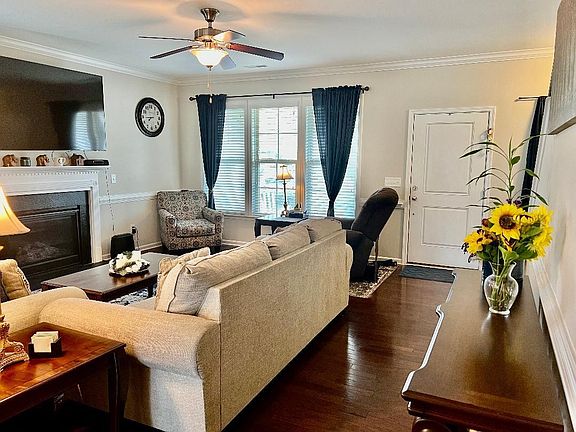 Lovely Custom Stone front , Craftsman style home in Poplar Creek Village. This home has 4 Bedrooms with a first floor owners suite, large walk in closet and open concept living area's. Large rocking front porch . Upstairs offers 3 additional bedrooms plus one could be a bonus room, its so large! Also walk in attic upstairs. Smooth ceilings, ceiling fans, hardwood flooring downstairs living areas plus the stairs. Home is in move in ready condition. Spacious Kitchen has granite counter tops, stainless steel appliances, and a huge island, gas cooktop, and refrigerator. Nice level lot,with room in the backyard for grilling on the patio and Solar panels! Neighborhood has comm.pool. Don't miss this one!!!