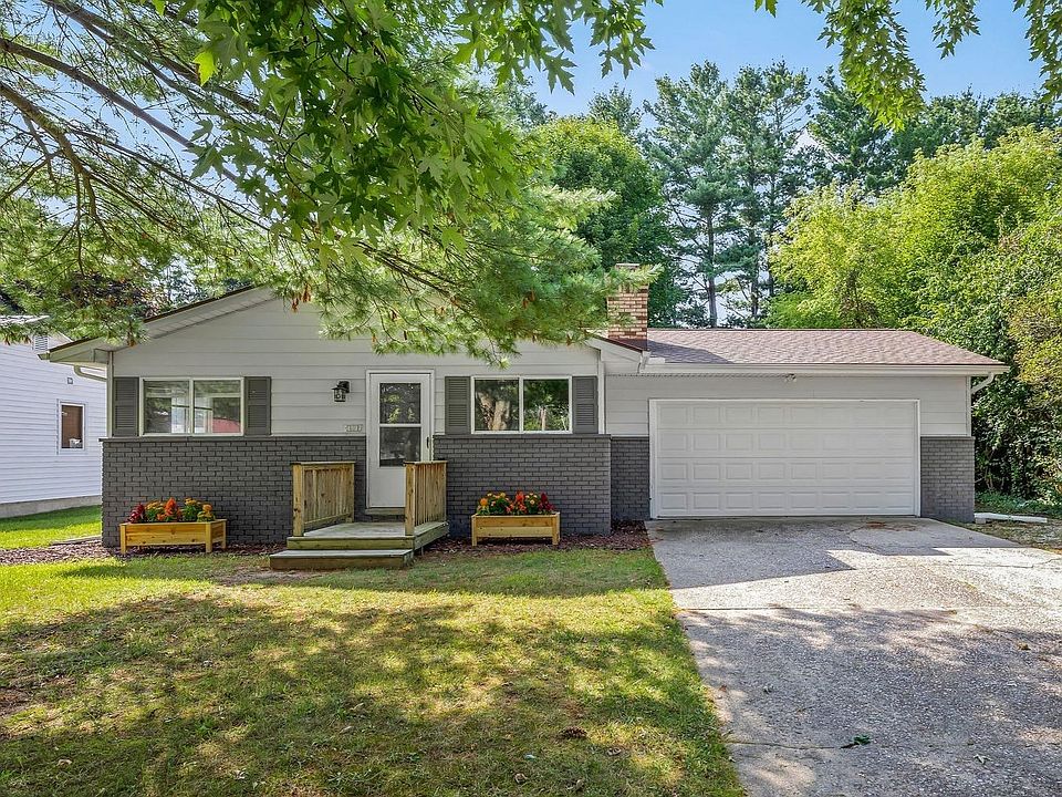 Updated 3 bedroom, 1.5 bath Ranch. 2019: New roof, gutters, open concept kitchen remodel, both full and half bath remodeled, Life-proof flooring, carpeting and 6 panel doors throughout, steps to basement. 2020: New furnace, hot water heater, washer and dryer.2024: New front porch. 2025: Interior and exterior painted, fenced-in yard. Front planter boxes. 2 car attached garage. Within walking distance to Woodcrest Elementary and My Michigan Hospital.