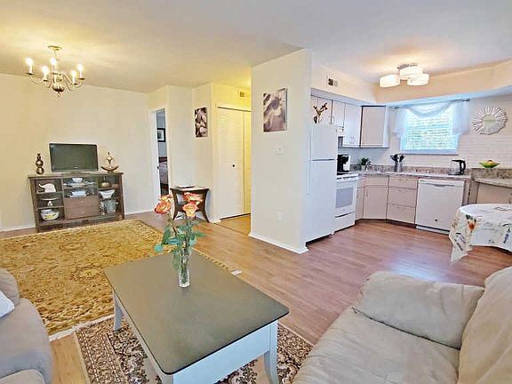 Welcome to 4907 Gina Court!!! This turnkey ground level 1 bedroom with den can be used as a full 2 bedroom 1 bath unit. Every inch of the interior has been modernized including new wide plank flooring, new carpet, new paint, fresh updated kitchen with subway tile back splash and modern Jack & Jill style bathroom. Windows have also been updated recently with classy window treatments. Consider this your cozy get away as you have two patios with one just off the den through a slider. Extra storage can be found in the utility closet. Low HOA fee's, club house , private pool and located within a stone's throw to everything La Bonne Vie has it all. Schedule your appointment today!