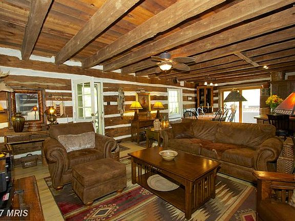 Rare historic property, George N Willey Circa 1780 with 3 original log homes, restored 3 bedroom mill log home with large deck and hot tub - main residence, lodge is 2nd home with 2 story great room, 3rd is original 3 bedroom log home, all with fireplaces.1000+ ft of frontage on Deer Creek, trails, woods, 15 development rights, tranquil setting yet only 8 miles from I-83, Income potential.