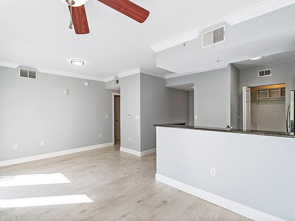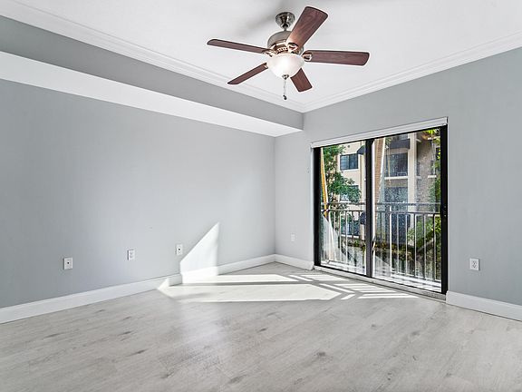 Upscale second floor 1BR/1BA condo in gated community located in the heart of downtown Palm Beach Gardens. Updated interior offers volume ceilings with crown molding, wood plank vinyl flooring and hurricane impact glass throughout. Open floor plan features adjoining living and dining areas, an open kitchen with granite counters, stainless steel appliances, and a laundry room with a full-size washer and dryer. Master suite has a large walk-in closet and an adjoining full bathroom with dual sinks. Exterior offers a tranquil covered balcony off the living area and master suite overlooking landscaped courtyard views and an outside storage room. Community offers resort style living including a clubhouse, media room, business center, fitness center, heated pool, tennis/pickleball courts Midtown is in within walking distance to shopping, restaurants and a short drive to public beaches and golf courses