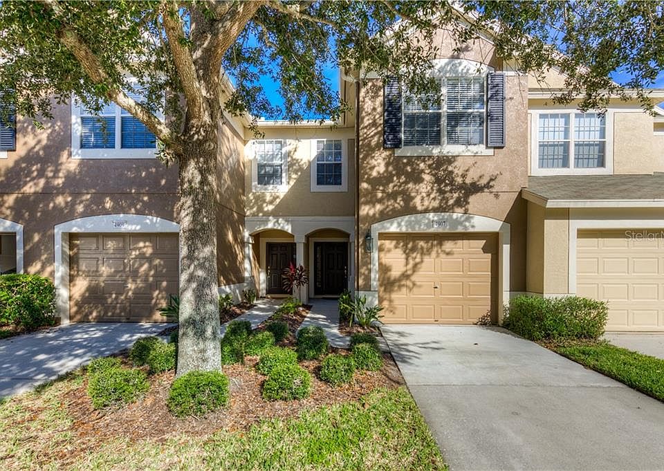 Immaculate 3 bedroom, 2 1/2 bath with a one car garage located in the gated community of Valhalla in Riverview. This town home has been tastefully painted, meticulously cared for and shows just like a Model Home. The kitchen includes dark cabinets, recessed lighting, NEWER stainless steel appliances and a closet pantry. The great room features ceiling fan and in the dining area. A slider leads out onto a screened lanai that has been tiled and a great water view. Up the stairs you will find 3 spacious bedrooms with vaulted ceilings, planter shelves, ceiling fans, large closets and plenty of natural light. The 12 X 15 master suite includes a soaring ceiling, a huge walk in closet, ceiling fan and a large double window. The master bath includes dual sinks, garden tub/shower combo and tile floor. A washer and dryer are included and are located upstairs for added convenience. This desirable, well kept community is convenient to shopping, entertainment, dining, i-75, Leroy Selmon expressway and Hwy 301. It is an easy commute to downtown Tampa and about 45 minutes to area beaches. Monthly fees include 2 resort style swimming pools, water, trash, basic cable and internet, lawn, outdoor pest treatment and building exterior maintenance. Guest parking and a community pool are a short walk away. Enjoy Maintenance free living at it's best!