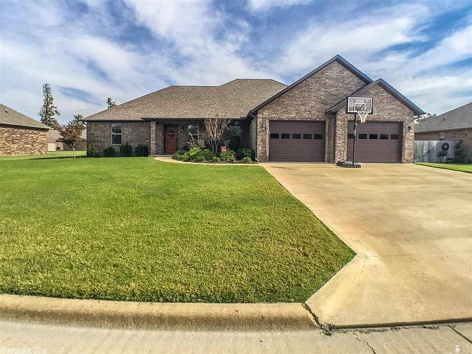 Wow! You must see this three bedroom, two bath, two car garage home. Large Living room with hand scraped wood, Large Kitchen with plenty of custom made cabinets , Large Bedrooms and a large Laundry room with an built in office space. Crown molding in the kitchen and bedrooms. Kitchen and baths with tile and carpet in the bedrooms. All bedrooms and living room have ceiling fans. Appliances are stainless and stay with the house.