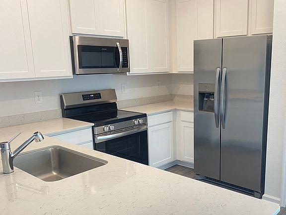 Welcome to this modern 3-bedroom, 2.5-bath end-unit townhome located in the desirable Marion Ranch Townhomes community in SW Ocala. Built in 2025, this two-story home offers a fresh, clean feel with contemporary finishes and a smart, functional layout. Downstairs, you'll find an open-concept living and dining area, a stylish kitchen with granite countertops, stainless steel appliances, and a large islandperfect for meal prep or casual dining. There's also a convenient half bath on the first floor for guests. Upstairs features all three bedrooms, including a spacious primary suite with walk-in closet and private bath, plus two additional bedrooms, a full guest bath, and an upstairs laundry area. As an end unit, you'll enjoy extra privacy and natural light. Step outside to your covered back patio and open backyard spaceideal for relaxing or entertaining. Home Features: 3 Bedrooms / 2.5 Bathrooms / 1 Garage Two-story layout with 1,787 sq ft End-unit townhome for added privacy Kitchen with granite countertops & stainless steel appliances Open floor plan downstairs, bedrooms and laundry upstairs Primary suite with walk-in closet and en-suite bath Covered patio & attached 1-car garage Built in 2025 in Marion Ranch Townhomes Located in a quiet community close to shopping, dining, schools, and medical officeswith easy access to SR 200 and I-75. Rental Terms: First and security deposit required Pets considered with additional fees and pet application $50 Rental application fee per adult Rental Disclosure: If this is a pet-friendly home, there is a non-refundable pet fee of $250 per pet and monthly pet rent of $50 (large breeds) or $25 (small breeds). Breed, size, and quantity restrictions apply. All animals must be screened for vaccinations licensing etc. Rental Requirements: No smoking or vaping First month's rent and a security deposit equal to one month's rent due at lease signing $50 application fee per adult (18+) If this is a single family home the tenant is responsible for utilities and lawn care Note: We do not advertise on Craigslist or Zumper. Equal Housing Opportunity