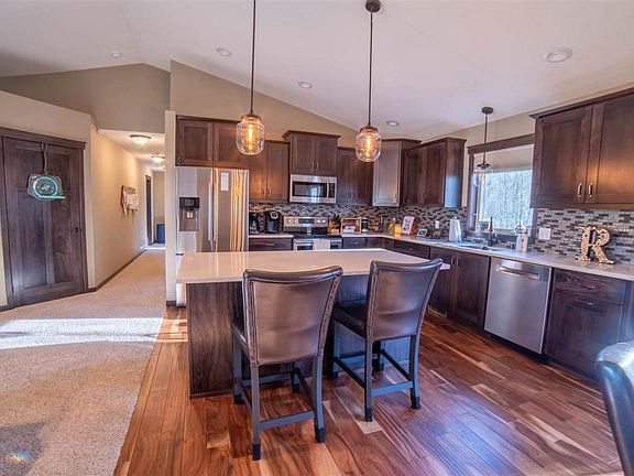 Picture Perfect newer custom 5 bedroom, 3 bath, 2 story home in Hermantown's coveted Timber Trail Estates. This home has it all, from the beautiful stone pillared front entry, large tiled front foyer, custom kitchen with granite counters. Well thought out design with over 3,000 sq. feet to entertain in two living areas, one with a gorgeous gas fireplace! The master en-suite is impressive with an awesome size walk-in closet, private bath with a huge walk-in shower! Their is a large, oversized 3 stall garage is heated, ample storage and an awesome, semi-private lot that connects to an awesome trail-system! Maintenance free deck off the kitchen leads down to an awesome patio/outdoor living space. Truly spectacular in all aspects, an absolute must see...what a setting!