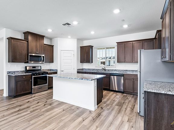 This five-bedroom, three-bath, single-story home has it all! When you walk in the home, you are greeted by a remarkable, open-concept layout. The chef-ready kitchen is open to the dining room and family room, creating the perfect space for entertaining. The family room opens to the covered back patio, making it easy to take the fun outside. The master suite of this home is located away from the additional four bedrooms and has a beautiful, en-suite bath with a dual-sink vanity, expansive shower and a huge walk-in closet. All upgrades come included in this home such as granite countertops, energy-efficient kitchen appliances, Wi-Fi-enabled garage door opener, solar panels and more. CAL DRE #02064225, LGI Realty - California, Inc.