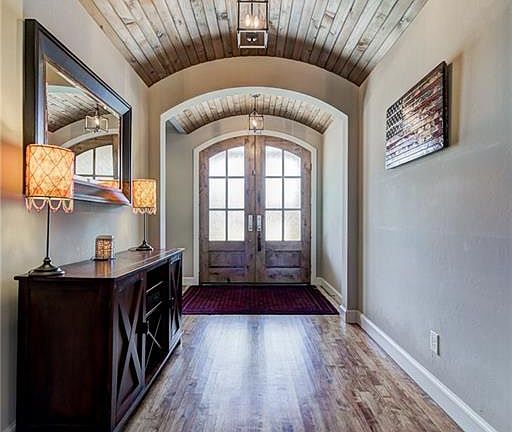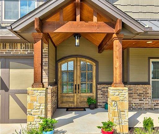 This exquisite home is full of charm & features an open floor plan with gorgeous wood barrel ceiling in the entryway, beautiful wood floors & tile work. The kitchen has an oversized island with granite counter tops, farm house sink, double ovens, built in gas range with pot filler, walk in pantry and opens up to the family room with vaulted wood beam ceiling, gas fireplace, large windows. The Master Bedroom features a tray ceiling with wood beams, luxurious master spa with a large soaking tub, walk in shower, his/her vanities the master closet w/custom built-ins connects directly to the utility room with a mud bench at the garage entry. Upstairs you will find a spacious bonus room, bedroom and full bath. Off the living room there is a covered deck with storage underneath over looking the large backyard. Home has spray Foam insulation, tankless hot water heater, water softner system.