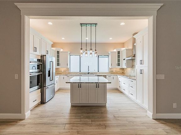 Beautiful, new home in South Lakeland, gated, lakefront subdivision! This 3/3 home with bonus room and office features an open, great room floor plan with cathedral ceilings in main living area! Spacious, gourmet kitchen with huge island, farm sink, upgraded appliances,wine refrigerator, and walk in pantry! Beautiful master bath with extra large shower, free standing tub, his and hers vanities, and custom made linen storage cabinet! Upgraded 8' solid core doors and all tile floors throughout. Exterior features an expanded, screened lanai, and tongue and groove porch ceilings. This amazing home offers tons of upgrades and a beautiful, soft, casual elegance feel throughout! Bonus room can easily be converted into a bedroom. Enjoy the best of Florida living and the lake breezes from this extraordinary home!