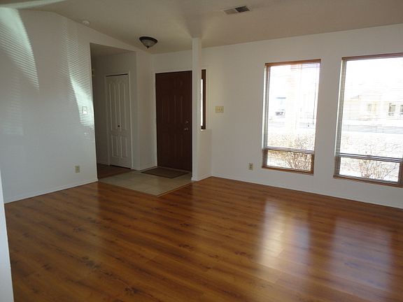 Nice 3 bedroom, convenient Rio Rancho location in Corrales Heights. Large cul de sac lot, front and back yards landscaped. Spacious family room with laminate wood floors and ceiling fan. Dining room open to kitchen. Kitchen appliances included are refrigerator, gas stove, microwave, dishwasher, and disposal. Carpet/laminate/tile flooring, window coverings, ceiling fans, washer and dryer also included. Master bedroom w/ceiling fan, master bathroom has a pedestal sink and walk-in shower. Large fenced back yard with covered porch. Two Car Garage w/remotes, evaporative cooling. Directions: East on Sabana Grande from Hwy 528 L on Dolores Hidalgo R on Palmas Atlas L on El Higo Rental Terms: Rent: $1,225, Application Fee: $40, Security Deposit: $1,225, Available Now This property allows self guided viewing without an appointment. Contact for details.