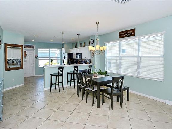 • Interior Features: Ceiling Fans(s), Eating Space In Kitchen, High Ceiling(s), Open Floorplan, Solid Wood Cabinets, Thermostat, Kitchen/Family Room Combo, Solid Surface Counters, Dry Bar