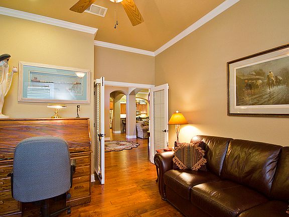 Truly custom finishes throughout this gorgeous Jimmy Jacobs Custom Homes masterpiece! Nestled in Heritage Oaks Active Adult Community --Greenbelt Lot, Amazing Landscaping, Courtyard Entry Feel! High Quality Hard Woods. Open Floorplan with Spacious Kitchen Loaded with Upgrades! 2 bedroom plus office plus formal dining! Enjoy Bird Watching from Great Room, Breakfast Area, Kitchen, Master Bedroom! One of a kind Custom Fireplace with Detailed Wood Carvings and Granite. Large Shower in master bath, double vanity, jetted tub. Plantation Shutters, High-end Lighting, Faux Paint... Don't miss this opportunity! For a full list of features about this home and to schedule a private showing, call Seth Koppel at (512) 750-8495. Heritage Oaks is a wonderful Active Adult Community with higher quality built homes, almost all built by Jimmy Jacobs Custom Homes. There is a wonderful club house and exercise facility. You can read about the community on its website at http://heritageoaksgt.com/. Also has an oversized two car garage that has made room for the extensive cabinets and workshop.