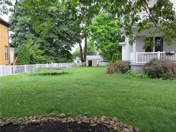 This turn of the century old farmhouse has somewhat been restored with updated windows, newer kitchen cabinetry, living and dining room along with bedrooms have been painted, stain glass window located in combination LR/DR and entrance. Beautiful hardwood flooring and brick decorative fireplace with window bench seating in living/dining combination. Master bedroom has vaulted ceiling with a separate entrance way with closet, French doors leading to a deck overlooking the large oversize lot that is like country living in the City. Palladium transom window in first floor full bathroom. Double pantry located in large kitchen. First floor laundry room and access to side of home from back of kitchen. Large front porch with columns and tastefully vinyl fence surrounds the property. A must see to appreciate! Home is being sold in "As is" condition.