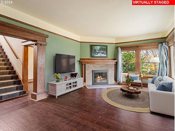 Gorgeous, stately Craftsman home which stands as a proud symbol of this neighborhood's rich history! Back on the market with even more Classic updates-new bamboo floors add to this amazing 1914 showplace! Enjoy 3016 sq ft of sunlite large spaces, along with turn of century architectural & craftsman elegance, lovingly restored & thoughtfully updated! Step inside and discover the gorgeous natural wood and millwork throughout—Douglas Fir trim & doors, stripped and refinished with a durable monocoat oil. Admire the surrounding Rose City Park neighborhood and pink cherry blossoms through large corner windows, and welcome your guests into the spacious formal dining room, which includes a beautiful built-in. Among the inviting spaces are 5 bedrooms, a den with a second fireplace, and family room. Enjoy sunset and treetop views from the large upper level bedrooms. Looking for remodeled and PRIVATE GUEST QUARTERS to house family members or host out-of-town visitors? Gorgeous French doors offer easy access to the 7 room guest quarter level, which includes a light-filled family room with partial kitchenette. Thoughtful 36" wide doorways ensure guests with mobility needs can be comfortably accommodated. MANY UPGRADES within the past 5 years include full abatement and removal of asbestos shingles and lead paint, skim-coated plaster walls, and full restoration & repainting of the original Douglas Fir exterior siding, as well as handcrafted kitchen cabinet doors to reflect this historical style. Utilities have been modernized to include dual gas furnaces and heat pumps, new plumbing, updated wiring, and a high-efficiency tankless inline water heater. Check out the document link for more upgrades. This enviable location is only one block from the Hollywood district, the "4th Best Walk To Neighborhood" in Portland, and offers quick commutes to neighboring schools, parks, downtown, and freeway entrances. Seller willing to offer credit for buyer closing costs. [Home Energy Score = 1. HES Report at https://rpt.greenbuildingregistry.com/hes/OR10067690]