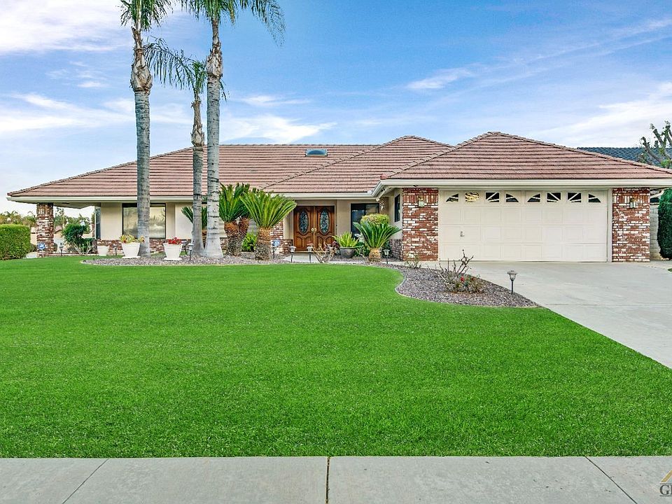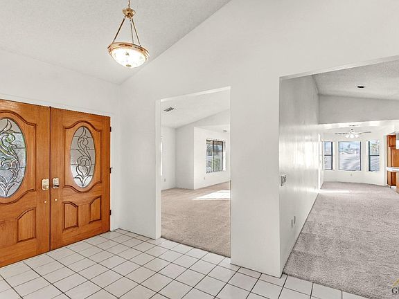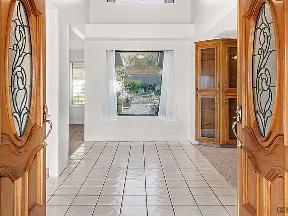 Step inside this beautiful 4-bed, 2-bath home in a charming North-West Bakersfield cul-de-sac, setting on an oversized corner lot. Heading through the double door entrance, you will be greeted with modern colors and high ceilings. The family/dining areas come with plush carpet, large windows, a custom light fixture in the dining area, central vac, and a wall separating the formal/non-formal living areas. The kitchen is equipped with tile countertops and a breakfast bar. Each bedroom comes with spacious closets, ceiling fans, and a master bed with a XL walk-in closet. The restrooms feature tile countertops, large vanity mirrors, and the master has both a walk in shower and soaking tub. The backyard oasis boasts a large covered patio area w/ retractable shades, a large amount of grass area, spacious side yard, and has block wall on 2/3 of property. Schedule your private showing today!