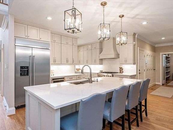 Over an acre, a spectacular FULL renovation, completed in 2023... Breathtaking lot, stunning custom finishes! 4600+sqft of living space, including a 1st floor Primary suite + 3 beds upstairs, all with private baths. 2 offices - 1 up, 1 down. Bonus w back staircase. 3 season room with fireplace. Walk up 3rd floor Man Cave/Play area. Wine storage, Walk in pantry. Spacious open connection to Family room. KITCHEN to DIE FOR! Pool community off Falls Neuse. A must see in the established Sheffield Subdivision.