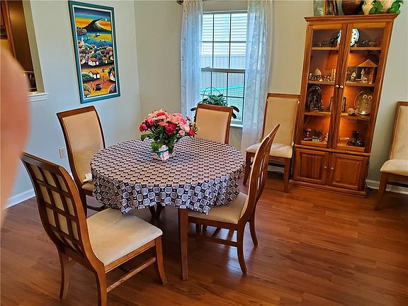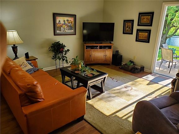 Patio and fenced yard overlooking Scarlett Lake, with covered front porch. Ceramic tile in Kitchen, entry, and hallway. New front and garage door. Roof is 3 years old, newer water heater and furnace. Updated cabinets and flooring in Main Bath and Kitchen. Kitchen also has large counter/breakfast bar. Master bath has new flooring and cabinets with beautiful ceramic tile shower. Attic has flooring installed for storage.