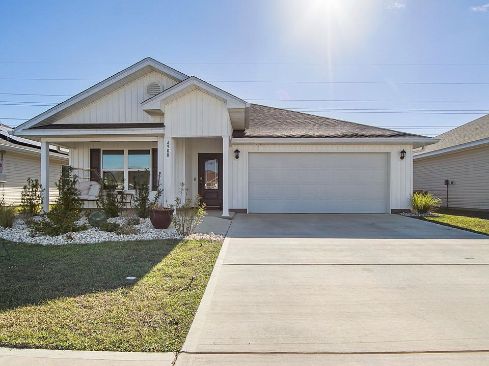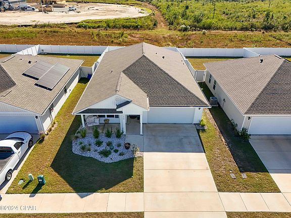 CURRENTLY UNDER CONTRACT, SELLER WILL CONSIDER BACKUP OFFERS Welcome to the 'CALI' floor plan in the highley desired ''Liberty'' community! Conveniently located minutes from Tyndall AFB, shopping, restaurants, and schools; Liberty offers a 7,500 Sq ft community center, full gym, wellness rooms, playground, resort style pool, splash pads and more! Showcasing a full home auqa pro system, covered front porch, gutters, screened back patio, and vinyl fence backing to a utility easement giving more wooded scenery and privacy. Inside you will find a split floor plan with luxury vinyl flooring throughout. Sitting off the entryway sits 2 secondary bedrooms and full guest bathroom fearing tub/shower combo; Adjacent sitting sits the laundry room and 3rd bedroom. Entryway leads to an open concept kitchen/ living featuring a new deep black stainless steel sink, kitchen island/breakfast bar, stainless steel appliances, walk-in pantry, eat-in dining area, and recessed lighting. Master bedroom and en-suite features double vanity's, soaker tub, separate shower, and walk-in closet.