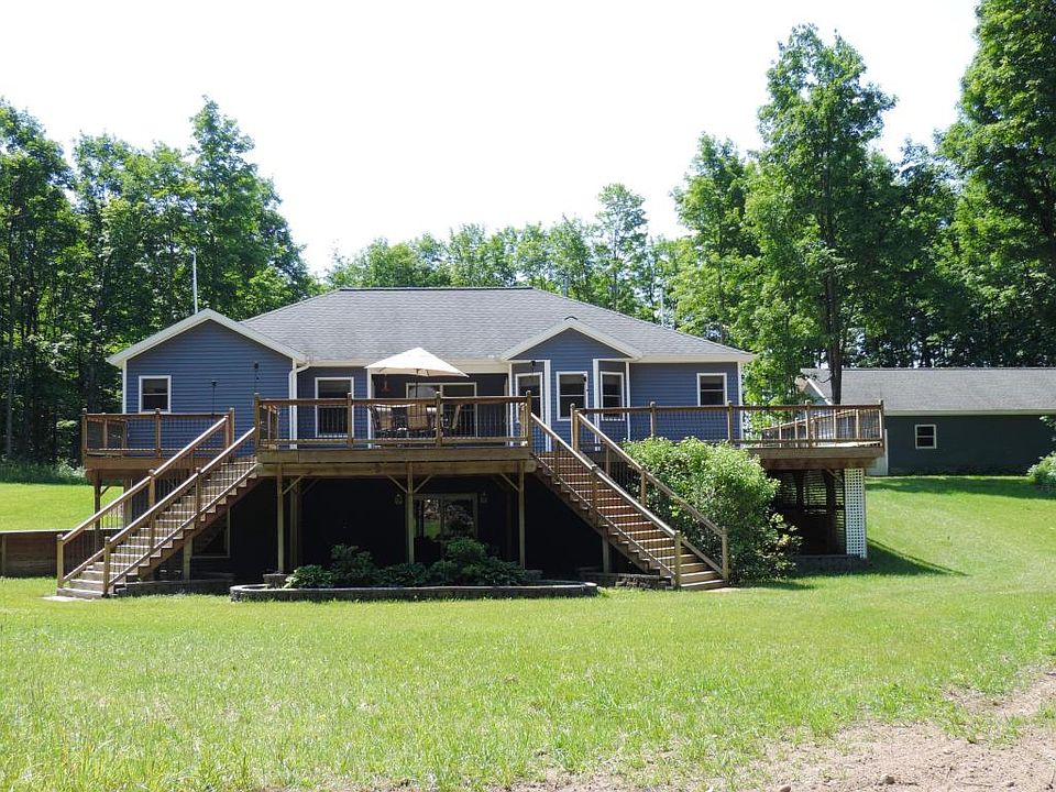 Gorgeous, custom built executive home on 10 acres! Home has 5 bdr, 3 baths (complete with jet tubs & marble throughout), full finished walkout basement with custom bar & cabinetry built for entertaining. Additional 28x50 stick built, 10ft ceiling pole building with front & rear doors. Custom tile & real wood floors throughout, extensive decking- private walkout from master suite, overlooking your 10 wooded acres. House was built with high end product- boasting any feature you could imagine! Cannot beat the price for all of this!