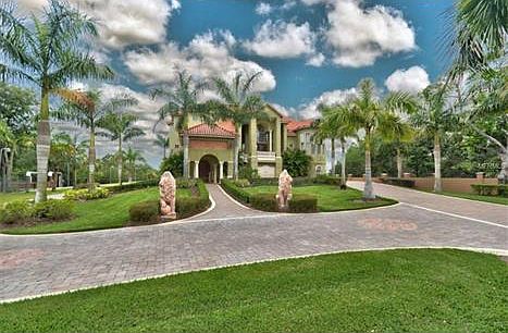 A SINGULARLY BEAUTIFUL PROPERTY & BRILLIANT FINISHED ESTATE! Providing 5 1/2 splendid acres zoned agriculture, couple with a sizable boat dock & waterway that leads directly to Tampa Bay, this residence is indeed a rare find. The massive lot is ideal as a horse ranch, personal farm or wonderful open space. An elegant gated entry, towering Royal Palms & long, beautiful paver drive welcome you to a stunning home of staggering Greco-Roman columns, custom stone handrails & polished stone balusters. Impressive open floor plan with gorgeous travertine/granite/stone flooring introduces a soaring 25ft high living room w/huge sweeping views of the endless, private back yard. Fantastic gourmet country kitchen enjoys magnificent custom cabinetry, rich granite counters, center island, multi-level bar, beautiful walk-in pantry & exceptional SS appliances. All Wow! A resplendent master suite offers a grand covered balcony, gas fireplace encased in stone, elegant ceiling treatments, spacious master closet w/dressers & a large luxurious bath featuring gorgeous travertine, granite & custom wood finishes. The incredible entertainment level boasts crema-marfil marble flooring, huge game area, spectacular bar & a plush media room. Outside you be taken back by an astonishing 4675sqft travertine paver pool deck encasing a large, spectacular Pebbletec Pool/Spa. Home offers 4 separate 200+ sqft covered balconies, fine 3-stop elevator, lavish bathrooms, 3 fireplaces, custom wrought iron metalwork & so much more.