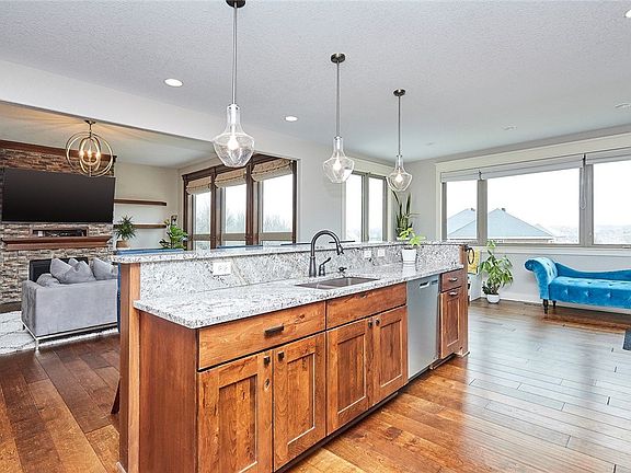 A beautiful 1.5 story home on .62 acre walkout lot in Urbandale's desirable Waterford Landing! Enjoy outdoor living w/ large paver patio, covered deck w/ maintenance free Trex decking & aluminum rail, prof landscaping, irrigation & amazing views! An open concept floorplan w/ hrwd floors to great room w/ floor-to ceilingstone FP, built-ins & sprawling windows. The kitchen features Dacor applns w/ gas range & 2nd oven, walk-in pantry, large island & spacious dining area w/ slider access to covered deck. The primary suite has tray ceiling, custom closet w/ laundry, tile shower & dual vanity! An office w/ French doors,mudroom w/ lockers & 1/2 bath complete main lvl.Upstairs find 3 generous-sized BRs w/ 1 en-suite 3/4 bath & 1 full bath other 2 BRs share, huge bonus loft & 2nd laundry. The LL walk-out has 9' ceilings,family room w/ FP & theater screen,large wet bar, flex room, 5th BR & full bath. Extras: 3 car heated garage w/ epoxy floor, triple zoned HVAC & whole house humidifier!