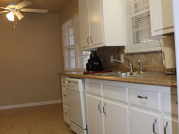 Great kitchen with tile flooring and backsplash, updated neutral counter tops, stainless sink!