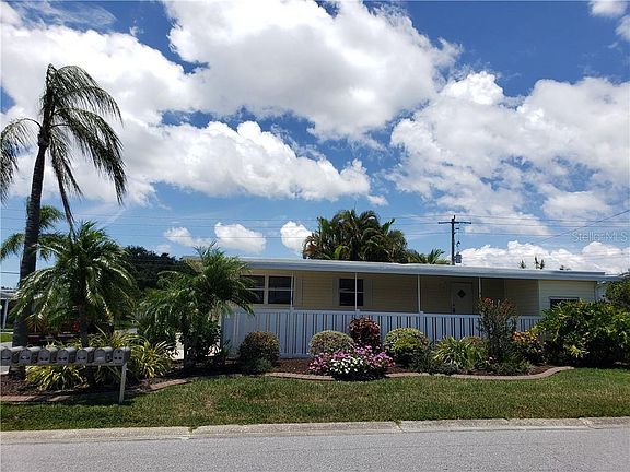 It's time to live the Florida lifestyle at a price you can afford. What an opportunity to own a Florida retirement home for under $60,000. Nicely appointed 1BR/1BA with covered carport and storage shed with washer/dryer hook-ups. Lovely corner lot with extensive landscaping. Freshly painted interior with newer kitchen appliances, 5 year old AC. Home is being sold partially furnished. Active + 55 gated park offers lakes for fishing, pickleball court, pool and clubhouse, fitness center and many year 'round activities. Fees include water/sewer/trash/cable/Internet and lawn maintenance.