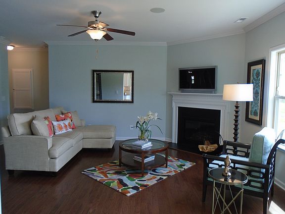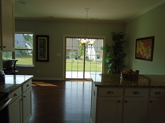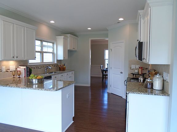 Large rocking chair front porch with stone accents. This spacious master down floor plan offers 5 bedrooms, 3.5 baths, formal dining room and a 21 x15 bonus room. The gourmet kitchen boasts an abundance of cabinets, granite countertops, designer backsplash, large pantry and stainless steel appliances. Hardwood floors in great room, dining room, kitchen and hall. Crown molding on main level, cased windows, built-in bench and cubbies at the garage entry, hardwood stairs with black iron rails and designer paint scheme. Tankless water heater in finished two-car garage.