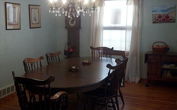 Brick 3 bedroom. 1.5 bath home. Original wood floors have been beautifully restored. Updated kitchen w/ all new tile floors, counters & cabinets. Wood burning Fireplace in the Living room. Updated windows. Part finished basement w/ bar. 2 car garage w./storage. Enjoy the outdoors on the deck and fenced yard. Large Master bedroom with built-in storage, large closet & bathroom. HOME WARRANTY!