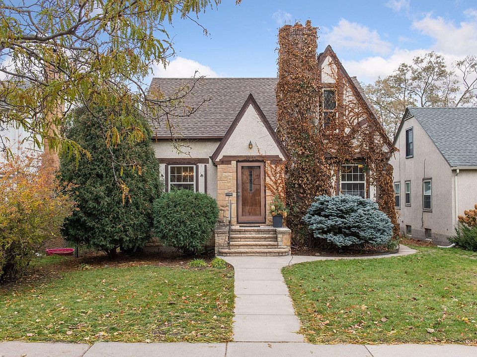 Welcome to this handsome English Tudor located just 1 block from Minnehaha Pkwy! Inside you'll fine a treasure of old world charm & character, with beautiful oak woodwork, gleaming newly-refinished hardwood floors, coved ceilings, archways, stone detailed fireplace, vintage lighting fixtures & more! This 1 1/2 story, with a beautiful center hall staircase leading to the upper level, with solid wrought iron railing. the upper level features a full bath with vintage ceramic tile, and 2 generous sized BR's, both with additional alcove space. The third bedroom and a 1/2 bath are conveniently located on the main level. The large kitchen has a separate informal eating room. A new buyer could easily do a kitchen facelift - or this great combined space offers excellent potential for an amazing kitchen remodel! The lower level has a family room with 2nd fplc, large laundry rm & storage. You'll appreciate the many mech. updates, attached garage and fenced rear yard!