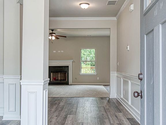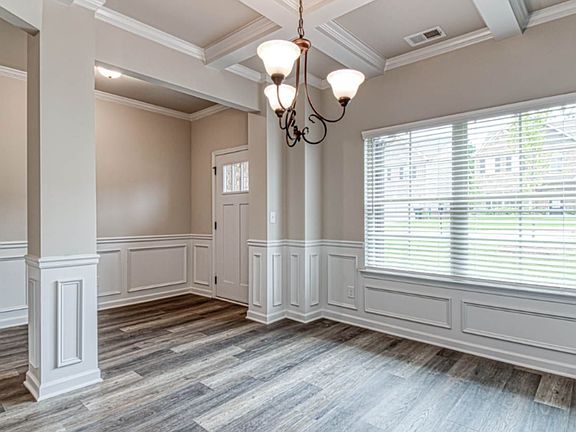 stock photos. Attached 2 car garage. $14,000 incentive with the preferred lender. Open concept kitchen with oversized granite island overlooking the breakfast area and family room with fireplace. First-floor guest suite with full bath. Dining room with coffered ceilings. Homeowneras suite with sitting area, expansive walk-in closet, two separate vanities, soaking tub and oversized shower. Upstairs loft is perfect for entertaining. This is on a full unfinished basement and cut-de-sac lot.