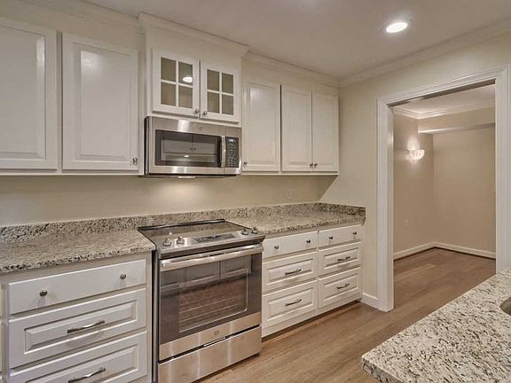 - RoomKitchenFeatures: Granite Counters, Recessed Lighting, Floors-Hardwood, Cabinets-Painted, Backsplash-Granite