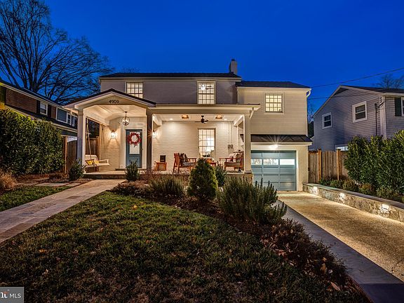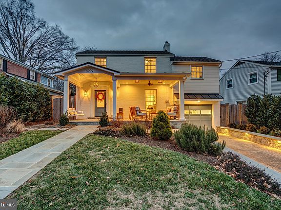 Offers, if any, due Tuesday 2/14 at noon. A Green Acres gem with original details yet selectively renovated with every attention to detail. The perfect urban-suburban home, 3BR+Den / 2.5 BA. The covered front porch boasts integrated heat lamps and invites you to linger while watching the sunset. The living room with fireplace opens to the dining room for easy entertaining. The kitchen and expanded family room, anchored by a wall of windows, provides views of the professionally landscaped backyard and patio. Hardwood floors, recessed lighting, and replacement windows. The upper level features two bedrooms and a den - used by previous owners as nursery, office, or playroom; plus one fully renovated bathroom. Lower level functions as the third bedroom / recreation room with built-ins, custom lighting, an egress window, fully renovated bath and laundry. The hidden Murphy Bed makes for a perfect en suite. All appliances and most systems are less than two years old. The 5,000 square foot professionally landscaped, fully fenced backyard and oversized garage makes this one something special. Garage is wired with a 240V panel and space for an electric vehicle charger. Westbrook, Westland, B-CC schools serve the neighborhood. Little Falls Pool Club and Friendship Heights Metro just down the street. Capital Crescent Trail and an abundance of parks, shopping and more nearby. Welcome home.